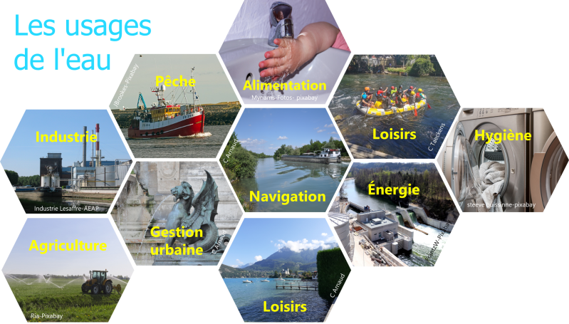 Environ 15 à 20 % de l’eau douce renouvelable sont prélevés annuellement pour l’eau potable et les activités économiques : agriculture, industrie, loisirs, refroidissement des centrales électriques. Les plus forts prélèvements d’eau ont lieu en été lorsque la ressource est moins disponible. Il faut donc tenir compte de tous les usages et notamment laisser suffisamment d’eau pour le maintien des milieux naturels.